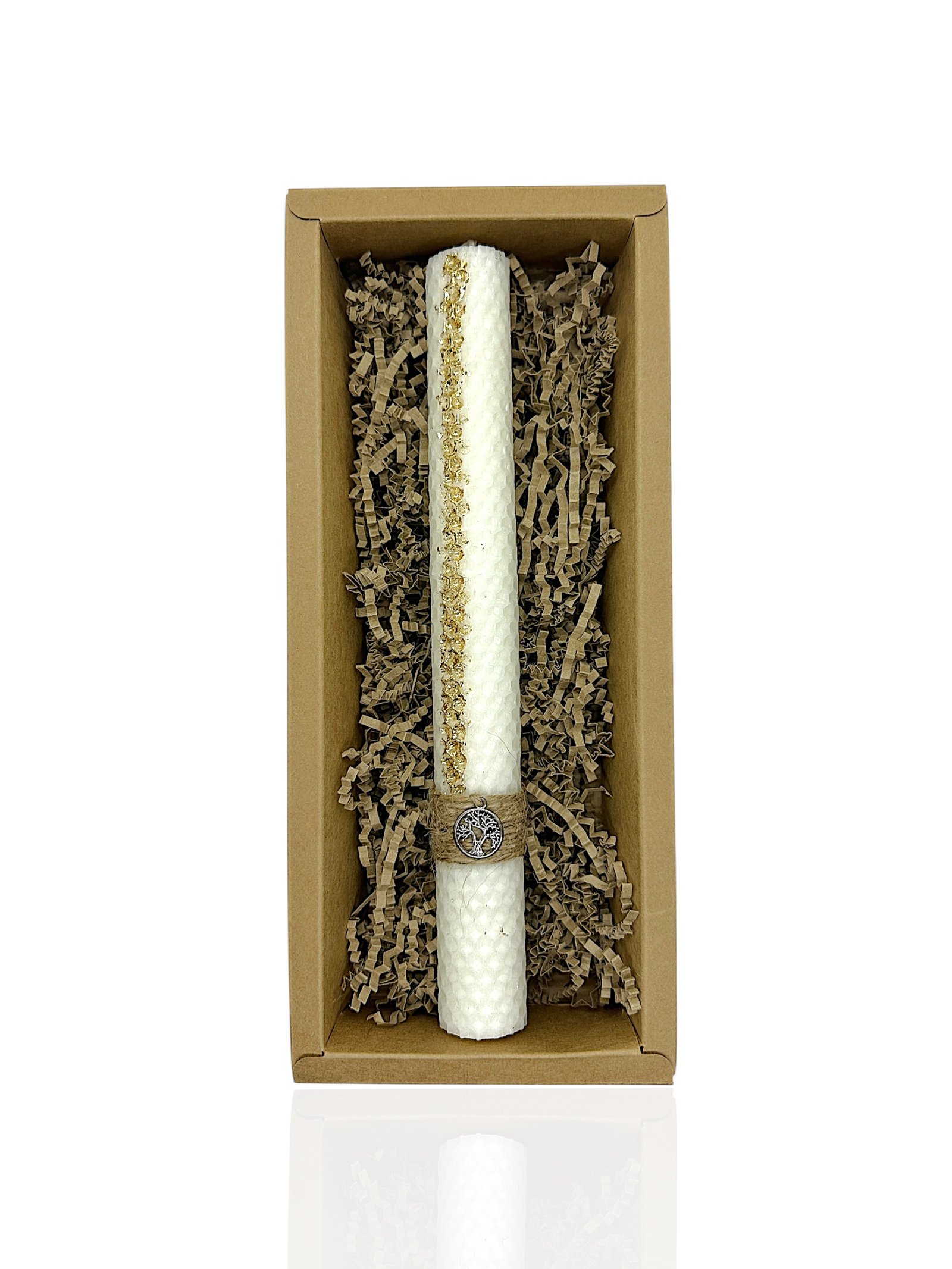 Αυτή η λαμπάδα αποτελεί ένα ξεχωριστό δώρο για βαφτιστήρια και ενήλικες που αγαπούν τα φυσικά υλικά και το minimal design.