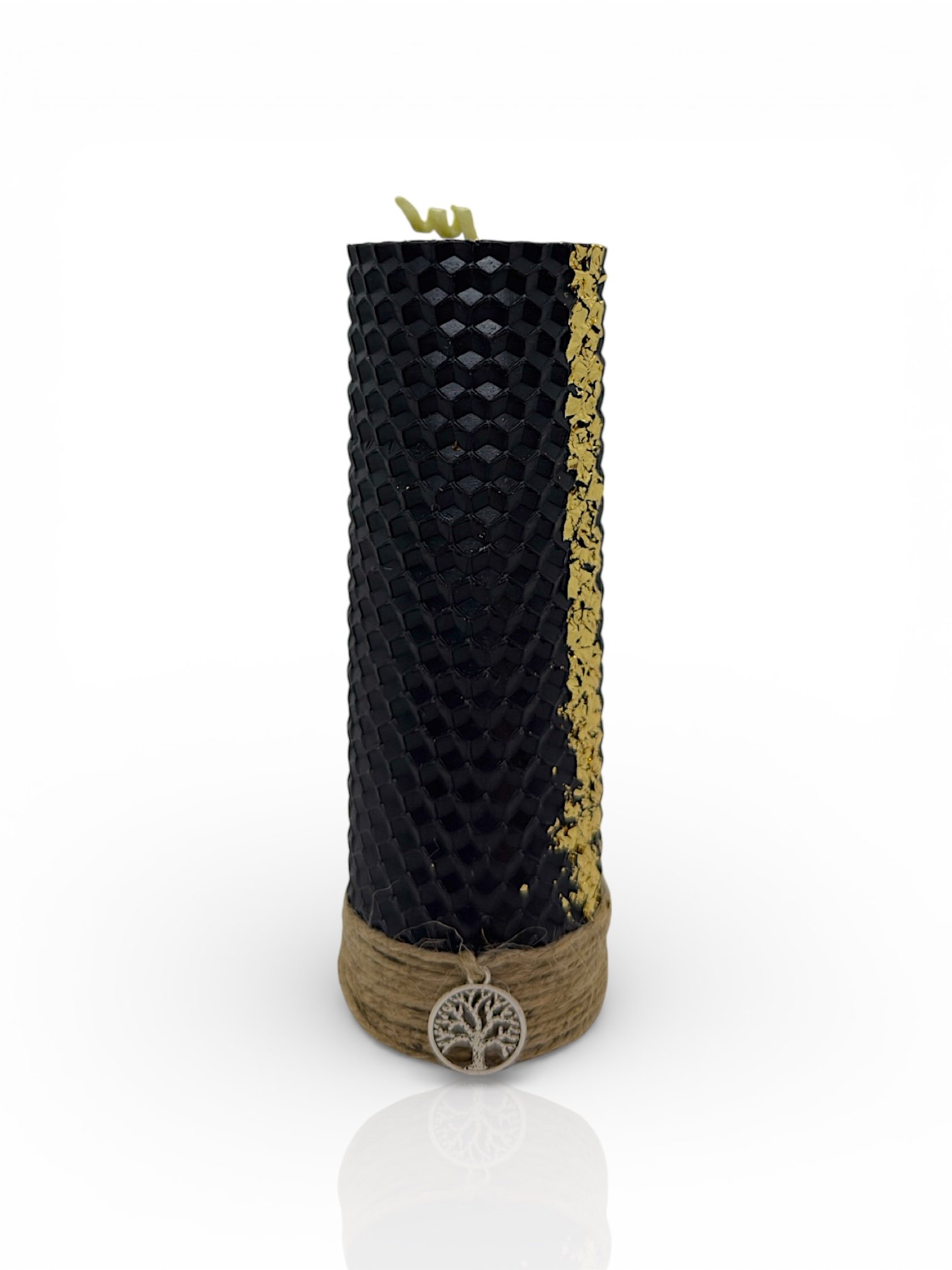 - 1 Μεγάλο Κερί Κηρήθρας: Από 100% αγνό μελισσοκέρι με φυσικό άρωμα μελιού και διακόσμηση από φύλλο χρυσού. Καθαρή, μη τοξική καύση.